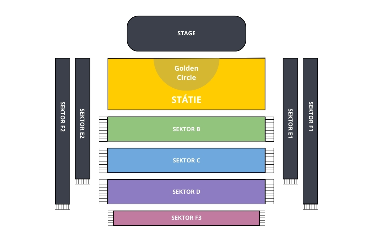 Na zobrazenie dostupných vstupeniek kliknite na Vami vybraný sektor: