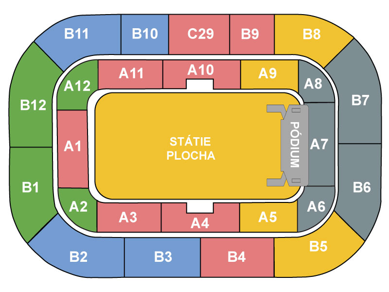 Na zobrazenie dostupných vstupeniek kliknite na Vami vybraný sektor: