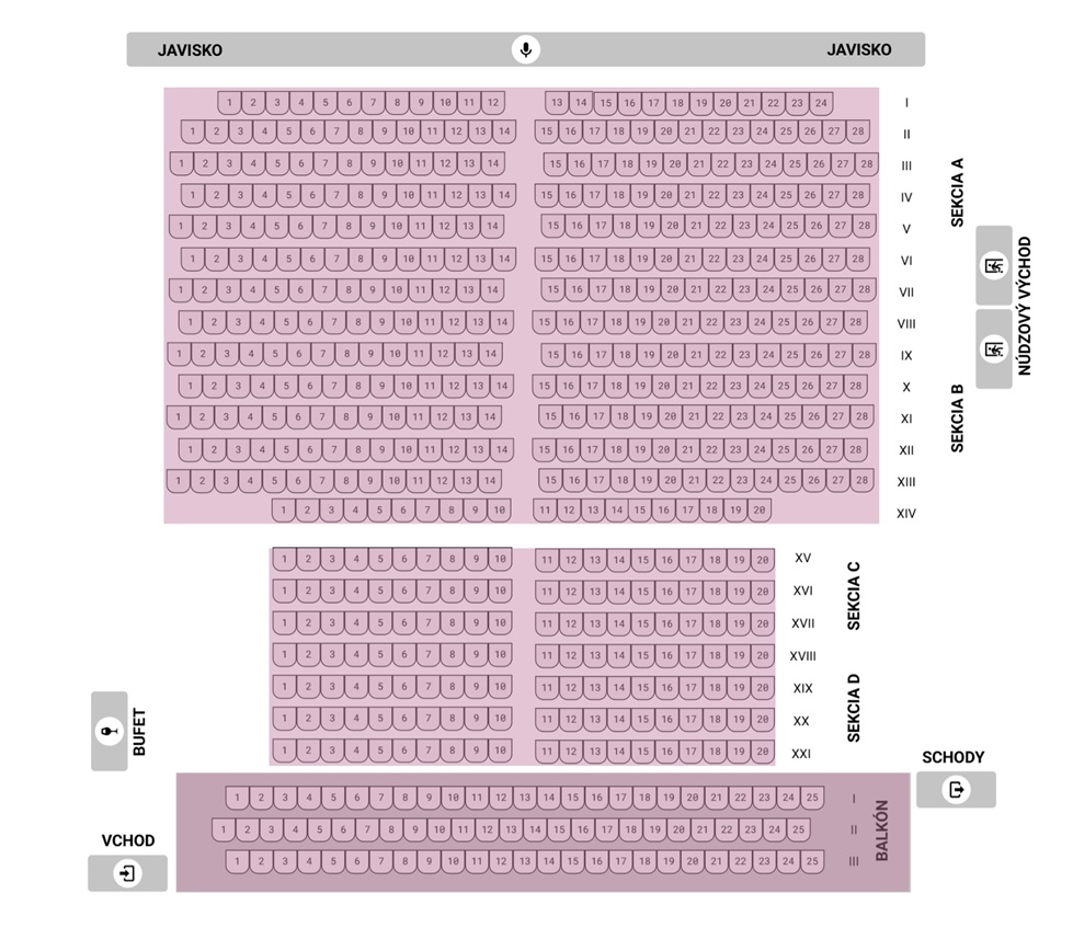 Na zobrazenie dostupných vstupeniek kliknite na Vami vybraný sektor: